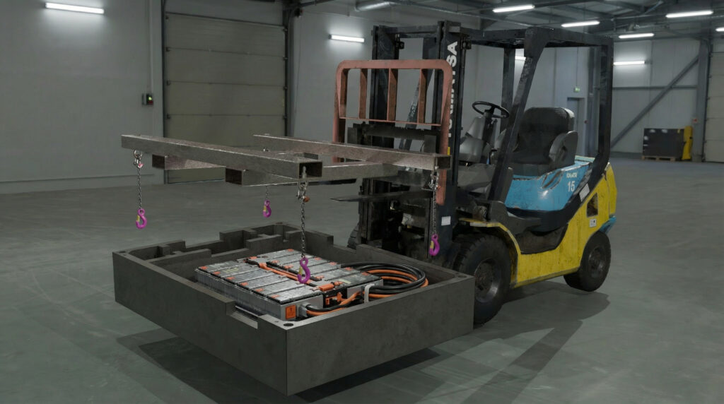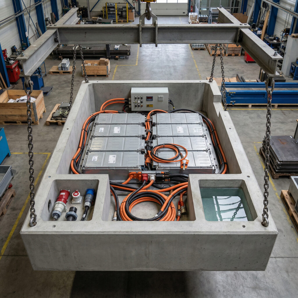 Die Grundlage unseres Systems ist die speziell entwickelte Batteriewanne. Statt die gebrauchten Batterien zu zerlegen oder umzubauen, werden sie im Originalzustand eingelagert. Das spart nicht nur Zeit und Ressourcen, sondern reduziert auch die Risiken beim Umgang mit beschädigten oder instabilen Zellen. Die Wanne selbst besteht aus robustem Material, das für den industriellen Dauereinsatz ausgelegt ist. Jede Einheit verfügt über eine eigene Brandschutzzone, in der thermische Ereignisse lokal begrenzt und kontrolliert werden können. Die Konstruktion erlaubt eine sichere Stapelung mehrerer Batterien übereinander und sorgt durch integrierte Sensorik für die lückenlose Überwachung von Temperatur, Zustand und Position jeder einzelnen Einheit.